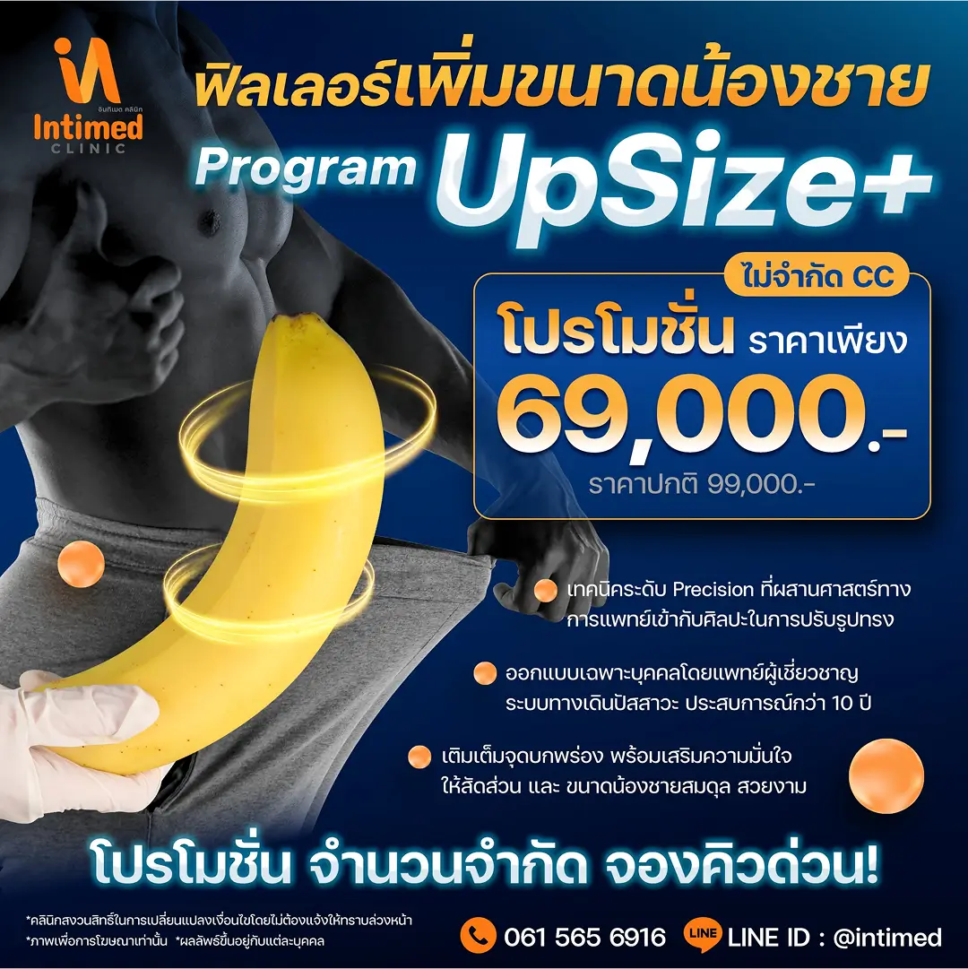 UpSize+ คือโปรแกรมการฉีดฟิลเลอร์เพิ่มขนาด อวัยวะเพศชาย ที่ออกแบบเฉพาะบุคคลโดยแพทย์ผู้เชี่ยวชาญระบบทางเดินปัสสาวะ (Urologist)